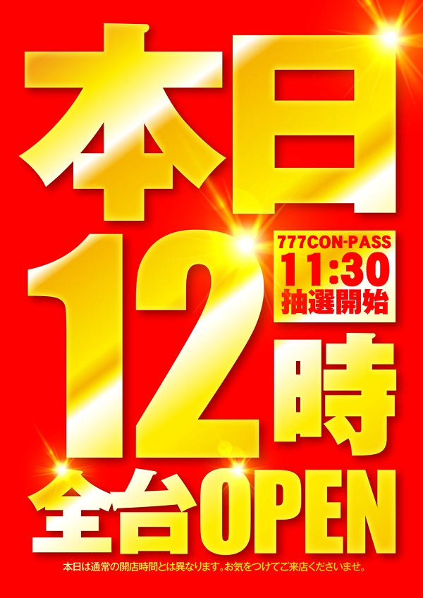 『777CON-PASS』によるオンライン抽選を利用しております。詳細につきましてはアプリにてご確認ください。 |