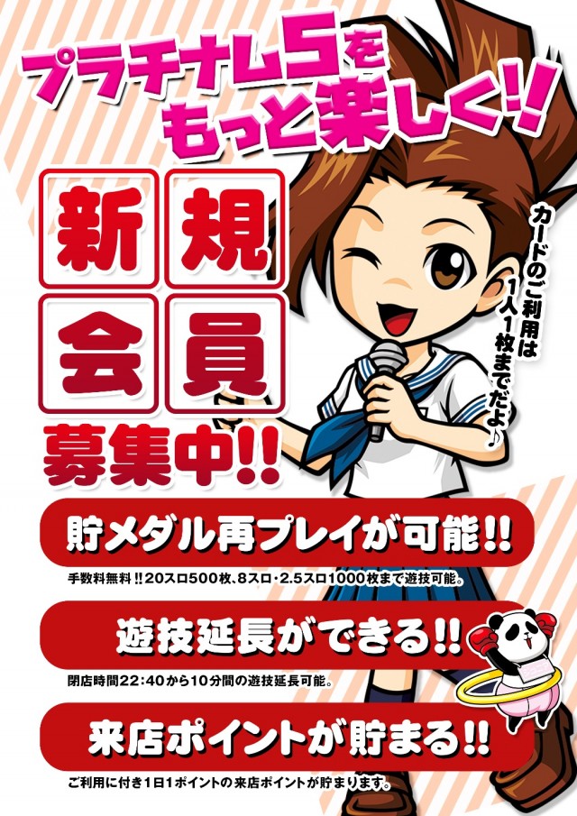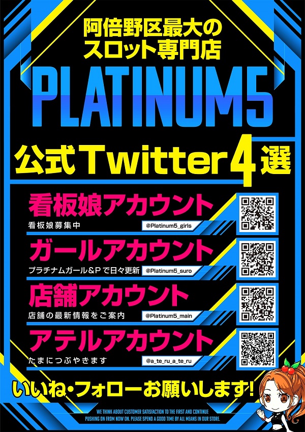 地域唯一のスロット専門店『プラチナム5』です。1階:スマスロフロア、2階:スマスロ&メダル機フロア、選べる③レート20円/8円/2.5円で遊べます。