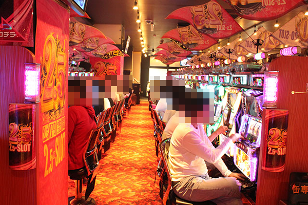 JR天王寺駅近くにあるパチスロ専門店で、20円・8円・2.5円と貸し玉料金にも特徴がある。