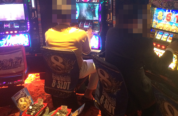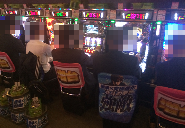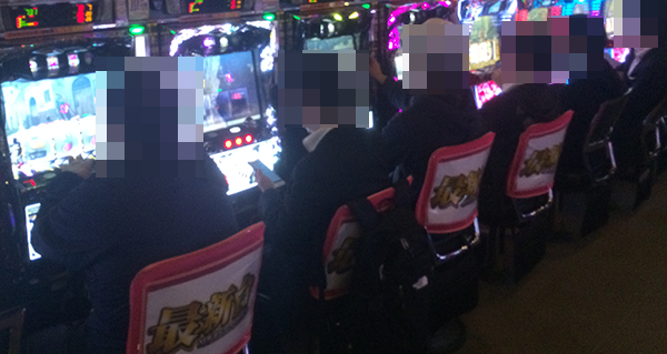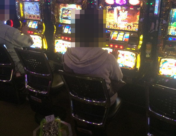 19時頃になると、20円パチスロの「パチスロ北斗の拳 強敵」や「ミリオンゴッド-神々の凱旋-」などでは、満面の笑みを浮かべているプレイヤーを発見。
