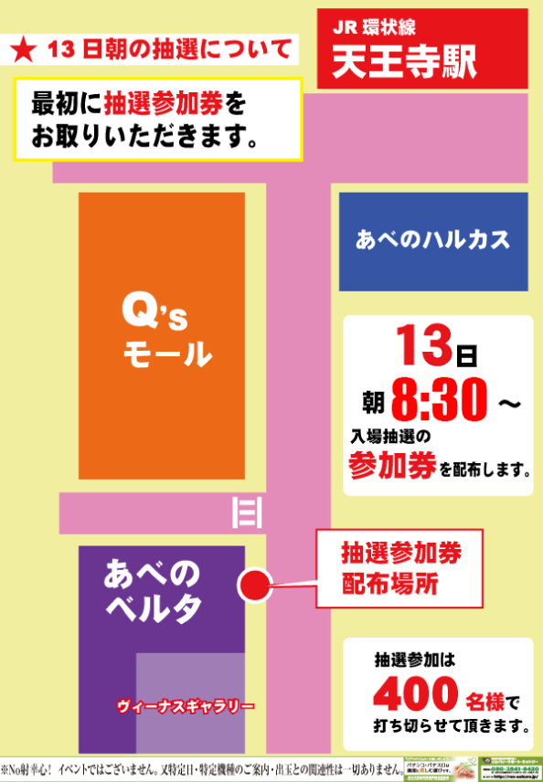 抽選参加券配布 9:10~ 抽選開始時刻 9:30~ |