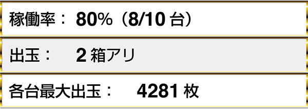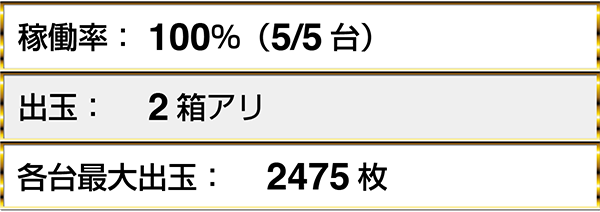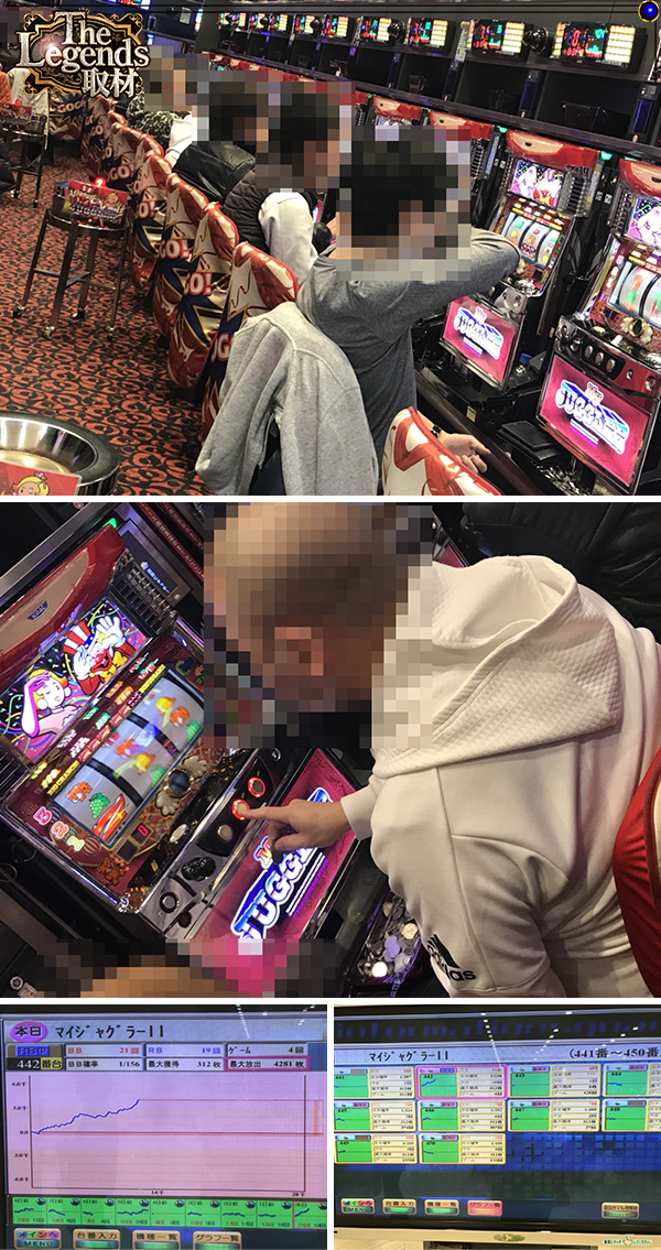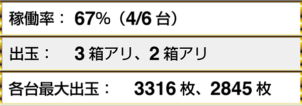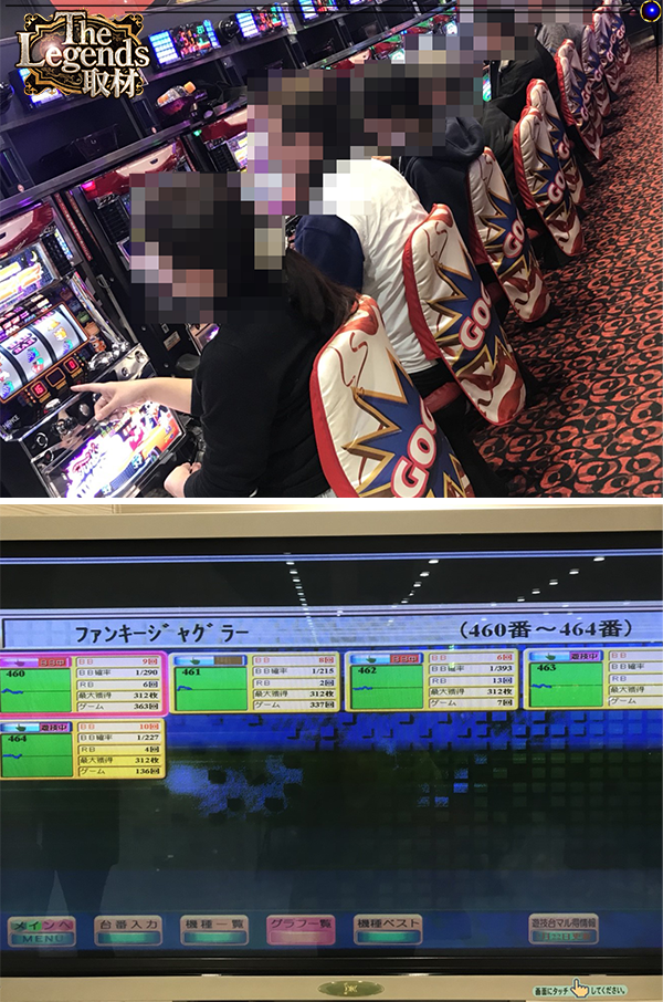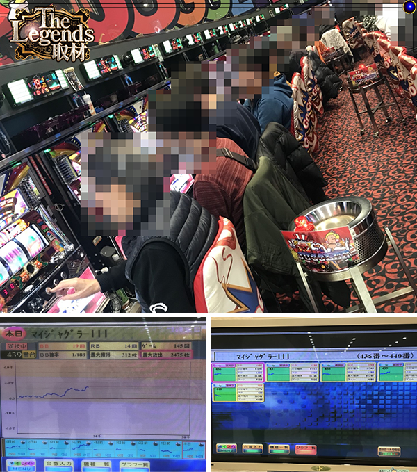 ジャグラーシリーズは全体で8割以上の席が埋まっており、なかでも『マイジャグラーⅢ』が満席。『マイジャグラーⅡ』では、4000枚を超える最大獲得出玉も目撃している。