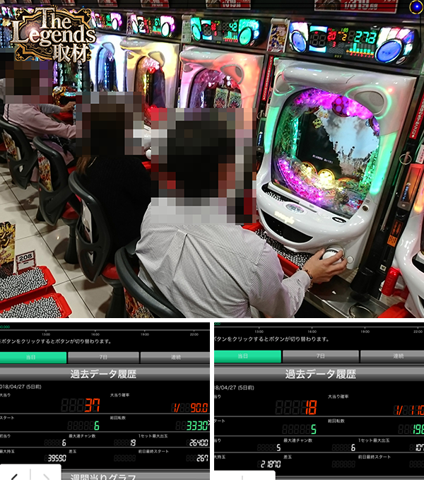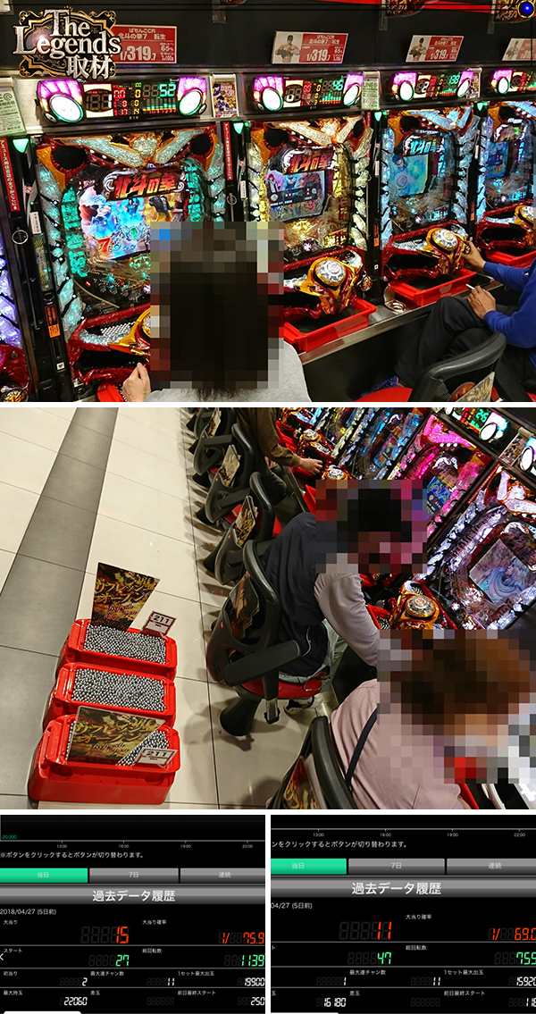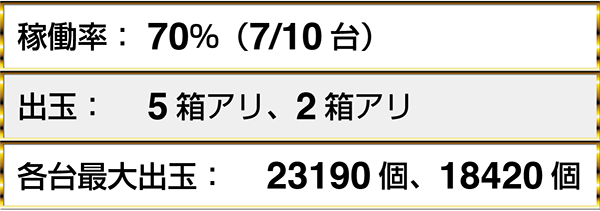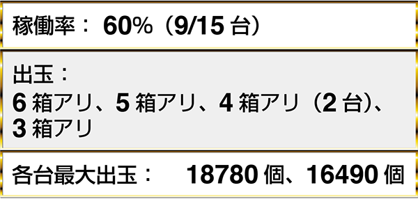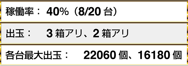 ホール全体で4台が最大獲得出玉20000個超えを記録していた。