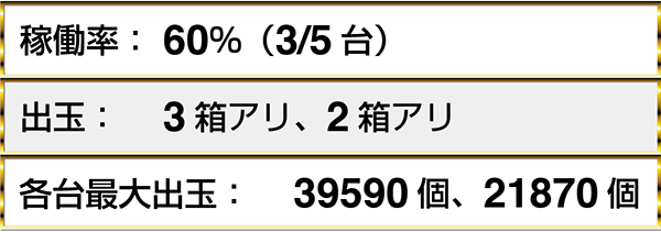 取材時にもっとも多かった最大獲得出玉は『CR真・花の慶次2』の39590個。