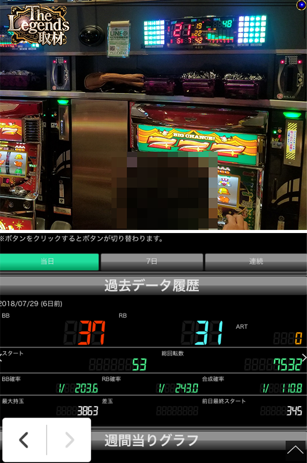 前日と同様に、『ゴーゴージャグラー』や『ハッピージャグラーVⅡ』でボーナス合算確率1/130以下のデータを目撃した。