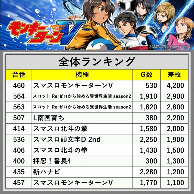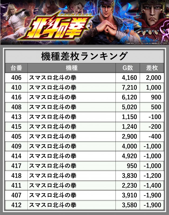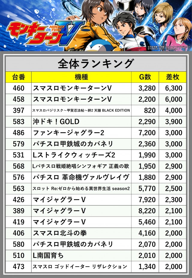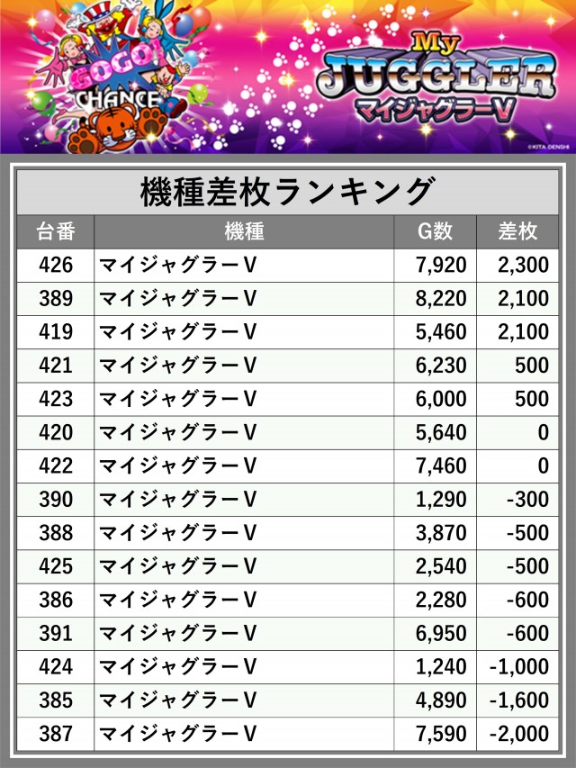 ※差枚数順に掲載しています