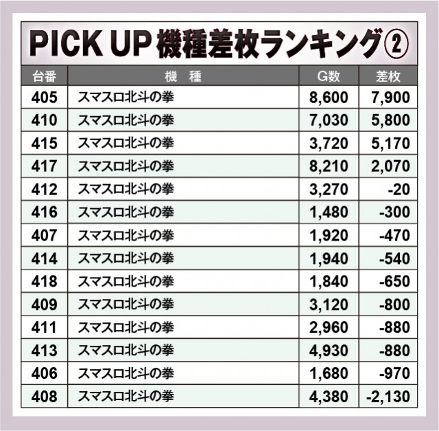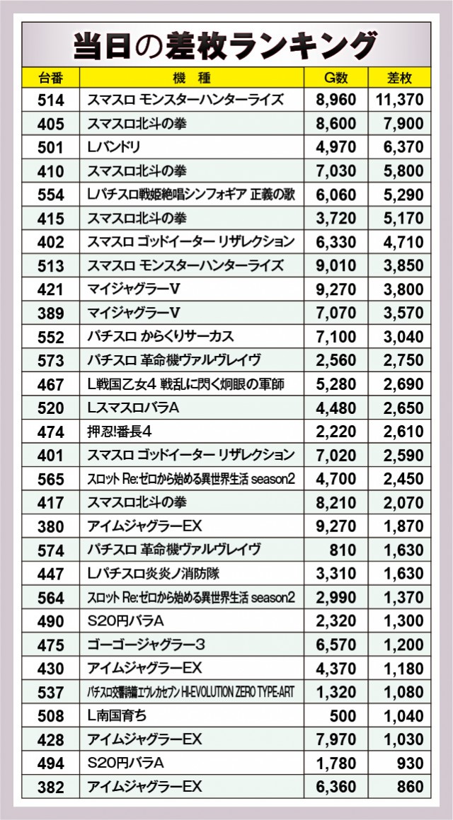 ※差枚数順に掲載しています。