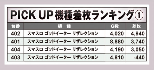 今回のピックアップは『スマスロ ゴッドイーター リザレクション』!! 4台全台のゲーム数、差枚数を掲載している。