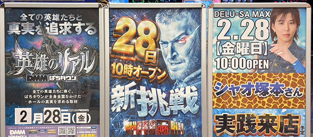 「デルーサマックス西成本店」にて実施された「英雄のリアル」はまとまった出玉を確保する台やじっくりと打ち込まれた台など、ファンが腰を据えて遊技をする姿を確認できた。2月も数々の盛り上がりを披露してくれた同店は、翌月も変わらず全力で突き進んでいくことだろう。そのためファン諸氏は同店の動向を逐一チェックしつつ、台と真摯に向き合うためにも、しっかりと準備を整えておくことをオススメするぞ!