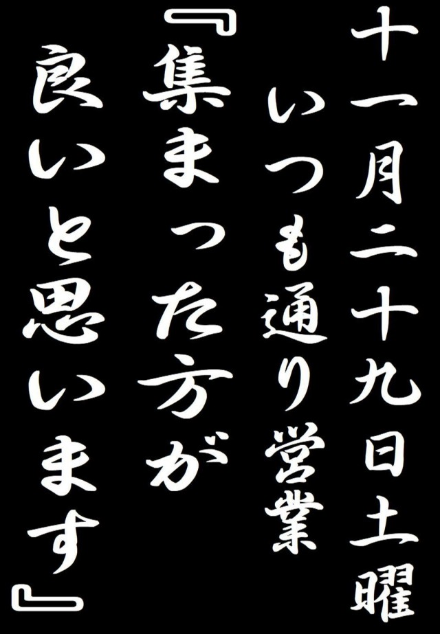 1位 11月29日(土) 2位 11月24日(月) 3位 11月19日(水)