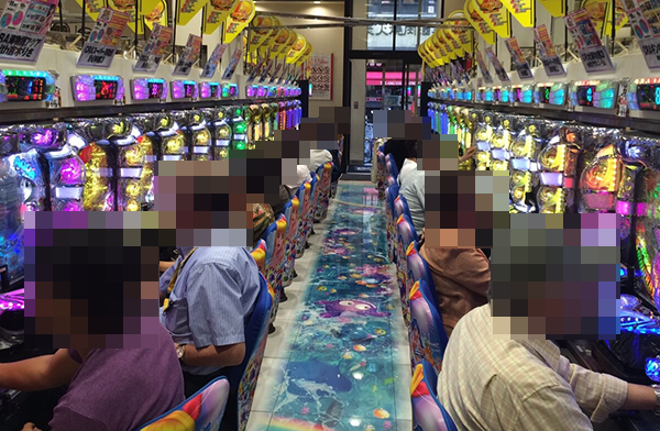 16時頃の店内ではパチスロがとくに賑わっており、ほぼ満席となっていた。