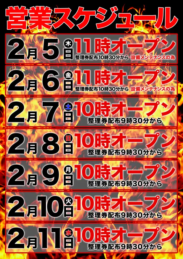 🌈2月5日(木)11時開店 🌈※設備メンテナンスの為