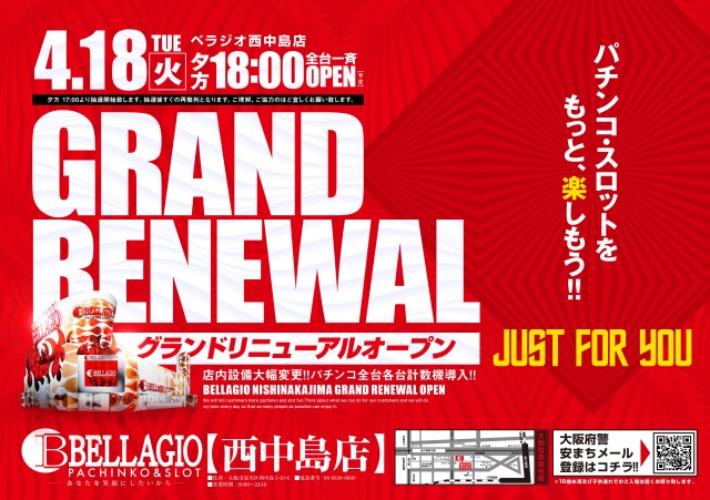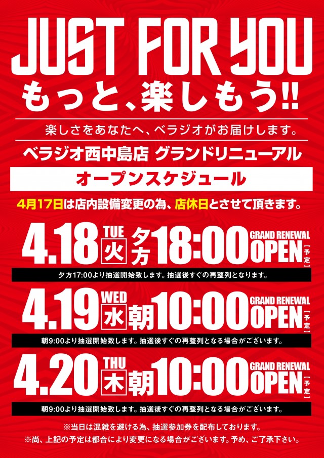 明日『10日』ベラジオ西中島店【JUST FOR YOU】♪