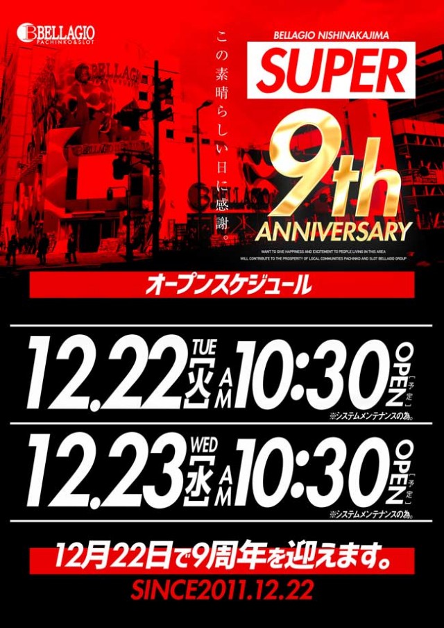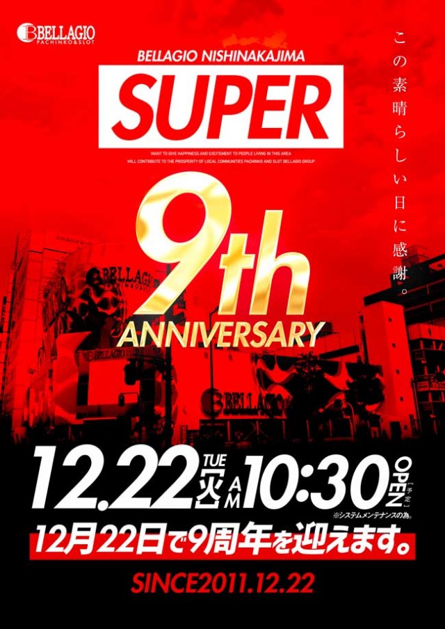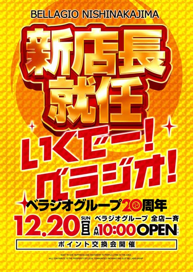 20日いくでー!ベラジオ!新店長就任【12.22 9周年】