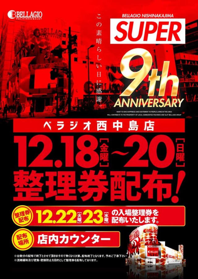 20日いくでー!ベラジオ!新店長就任【12.22 9周年】