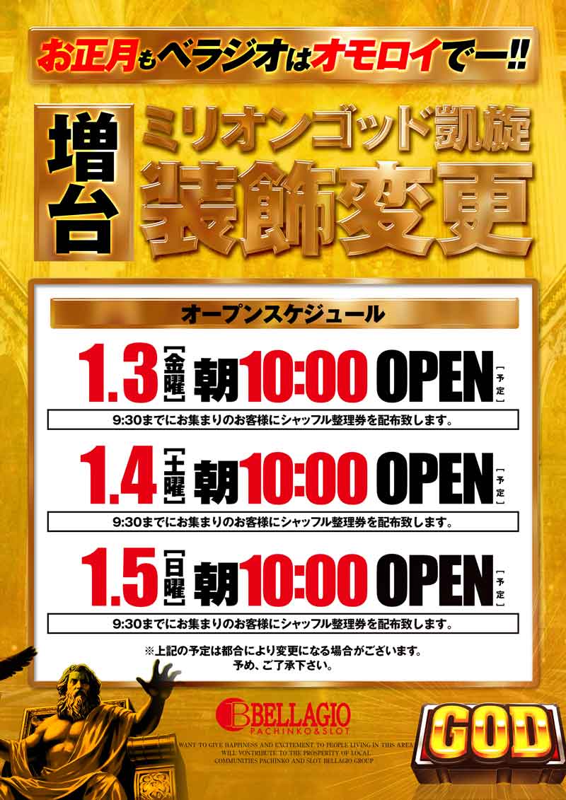 ベラジオ最重要旗艦店 1月3日(金)10:00 OPEN