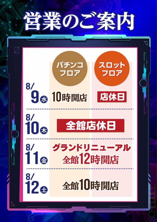 ★8月7日★新装13時開店★入場整理12:30駐輪場★