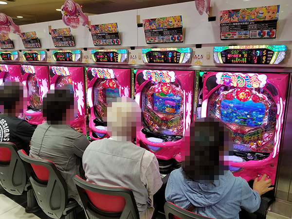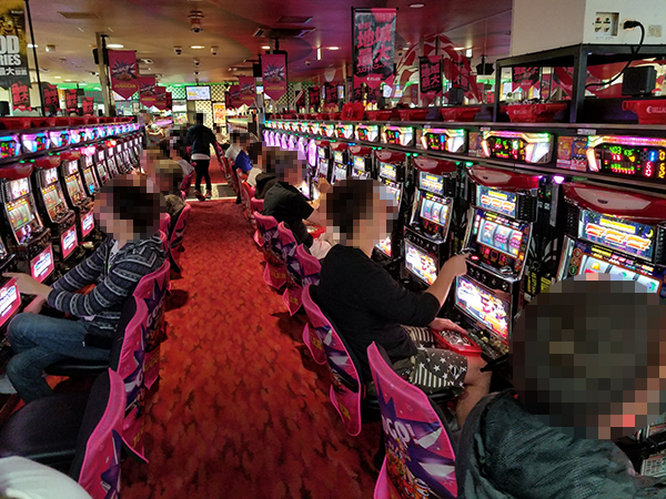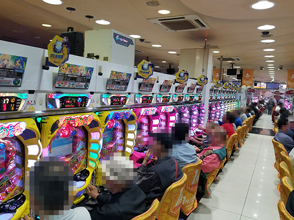取材時、店内には既に多くのプレイヤーが集結し、パチンコ・パチスロを問わずにぎやかな状況となっていた。