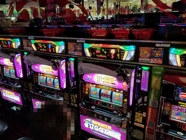 同店のパチスロで圧倒的に支持を集めていたのが、ボーナスタイプのジャグラーシリーズで、機種のポテンシャルを上手く引きだしたプレイヤーを数多く目撃。各人とも、レバーを叩く手に力が入っていたように思う。