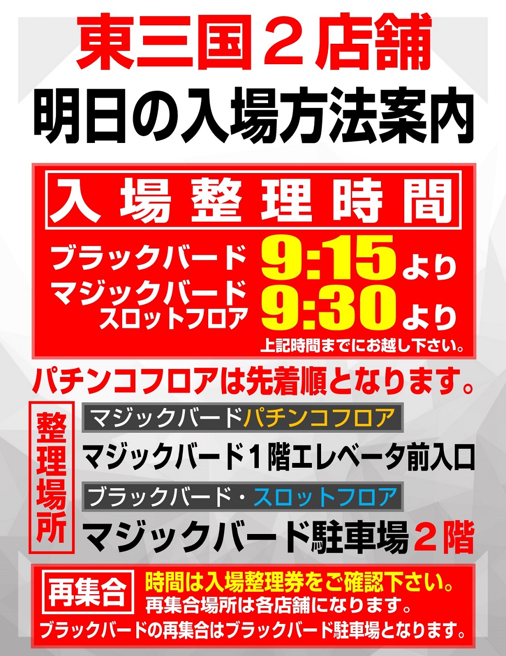 20日10時OPEN!!明日の入場方法をご確認下さい