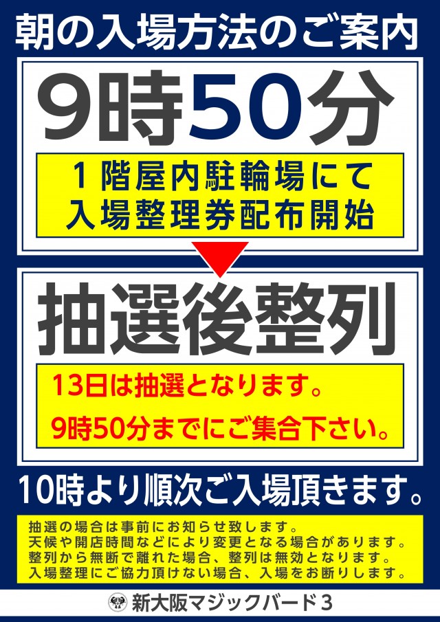 いざ大阪No.1へ! 10月3日 10:00 OPEN