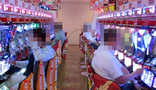 「ミリオンゴッド−神々の凱旋−」や「バジリスク〜甲賀忍法帖〜絆」、「パチスロ バイオハザード6」にて、プレイヤーが笑顔で遊技。