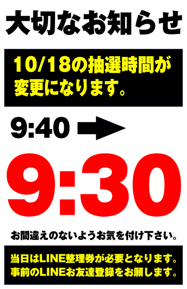 【王道営業】10月17日(金)10時OPEN