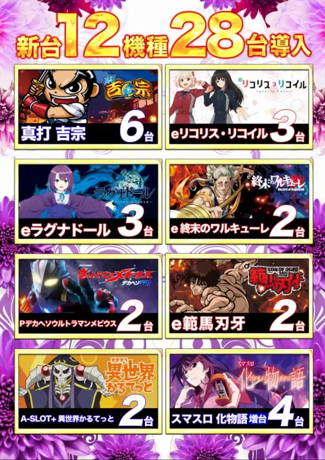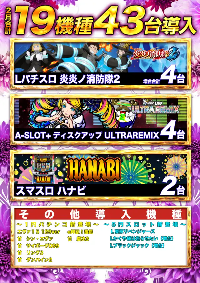 1000円250玉パチンコ:320台 1000円1000玉パチンコ:128台 |