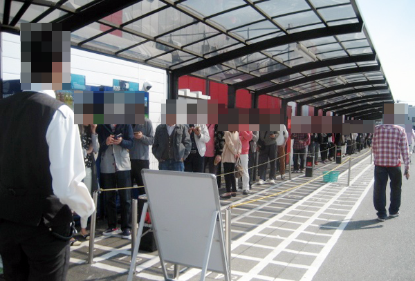 取材日は開店前から60名以上が集合。開店直後も続々とプレイヤーが増えていき、パチンコでは