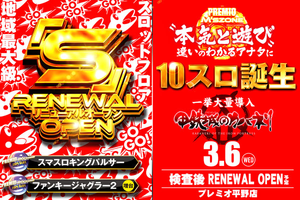 プレミオ平野店 〝スロット〟RENEWAL OPEN♪