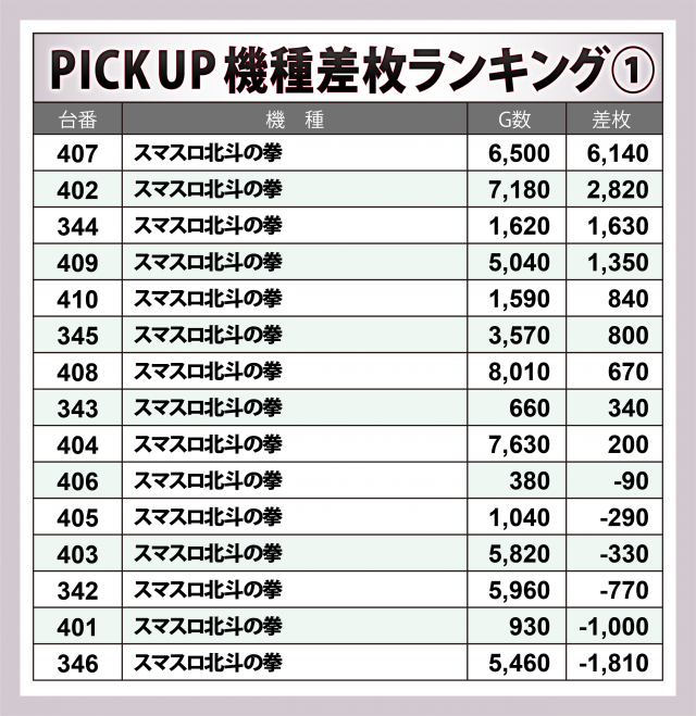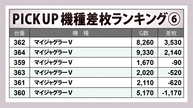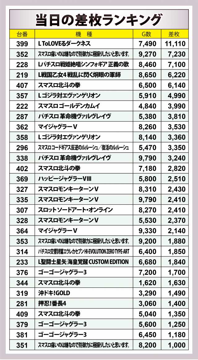 ※差枚数順に掲載しています。