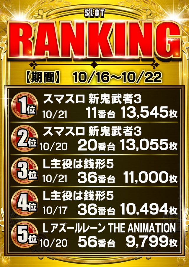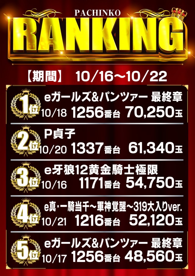 1位 10月6日(月) 2位 10月23日(木) 3位 10月4日(土)