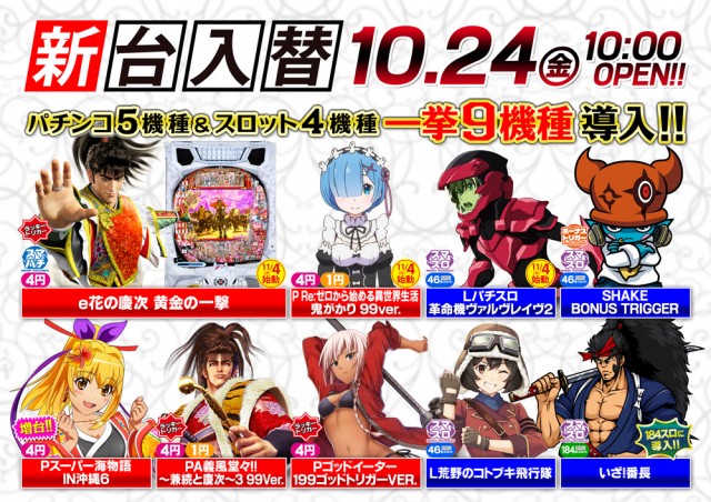 明日 一挙9機種導入❗ 新台入替❗ 10時オープン❗