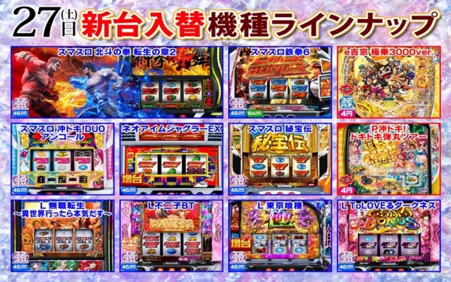 27日 リニューアルオープン×大型新台入替❗ スロット増台❗