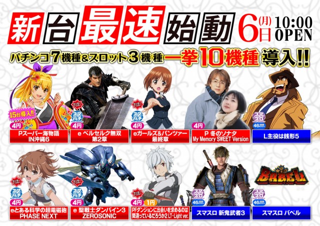 明日 6日 一挙10機種❗ 新台最速始動❗ 10時オープン❗