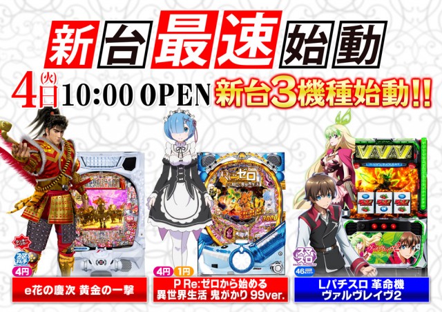 明日 一挙10機種導入❗ 新台入替❗ 10時オープン❗
