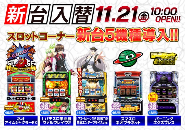 明日 5日(金) 新台入替❗❗ 一挙新機種11機種導入❗