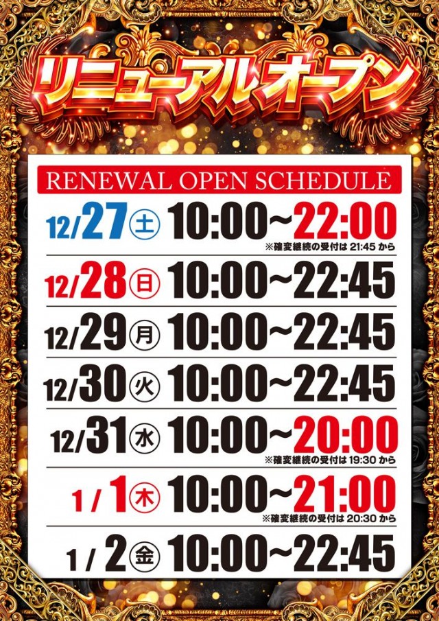 明日12月22日(月) 新台最速始動❗ 10時オープン❗❗