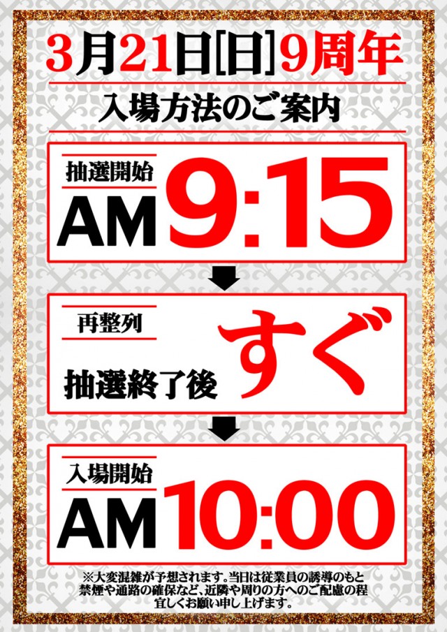 9:30頃から入場整理券を配布しております |
