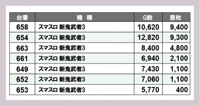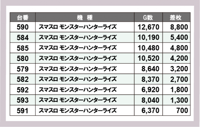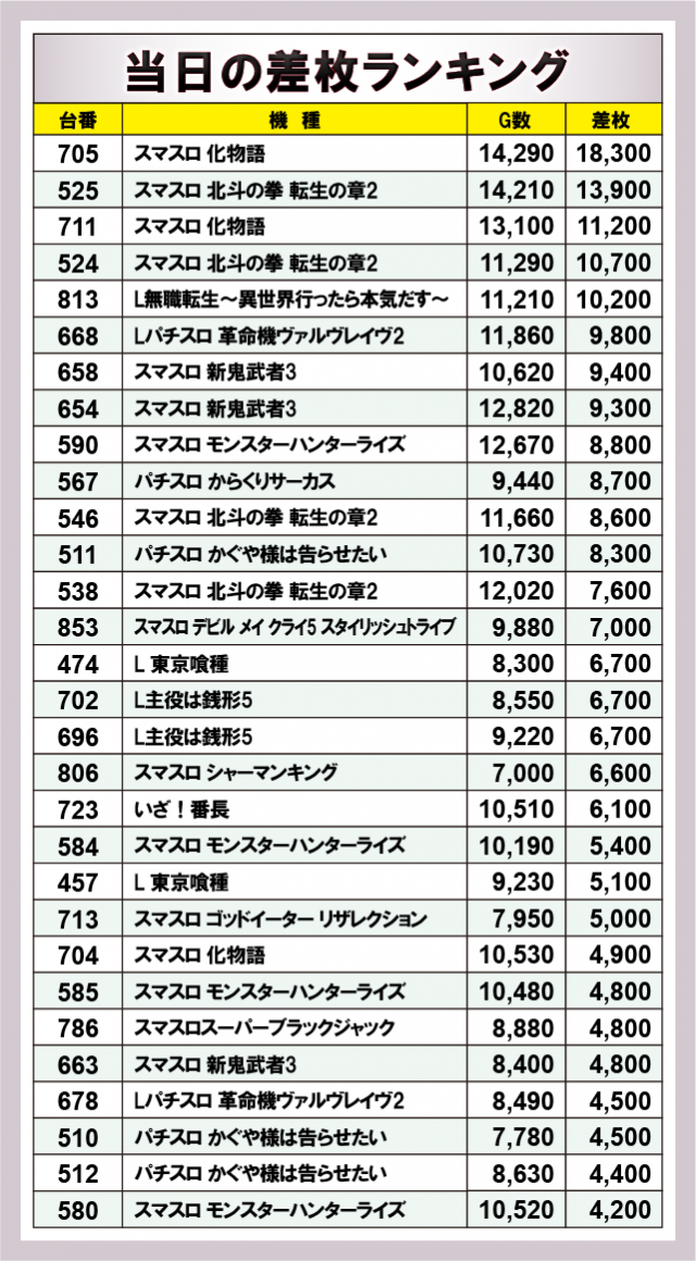 ※差枚数順に掲載しています