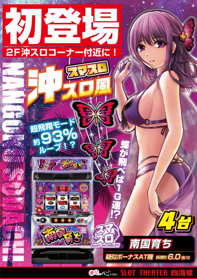 本日新台4機種導入+関西最大級ハナハナコーナー56台へ拡大!