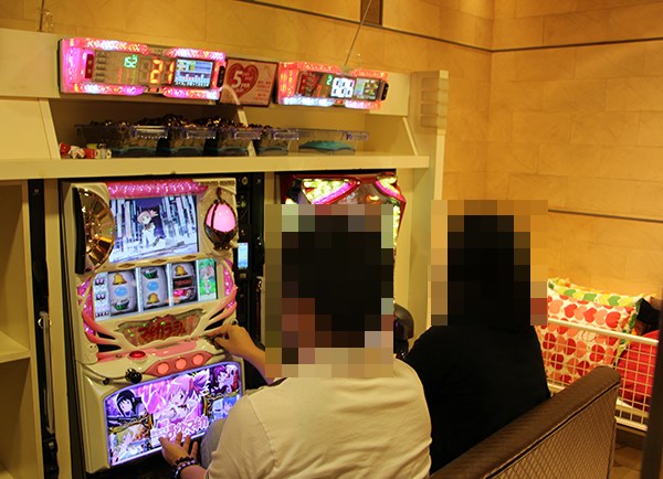 5円パチスロには、2人で並んで座れるペアシートが設置されている。