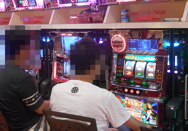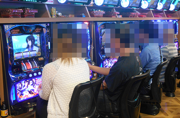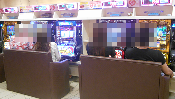 5円パチスロにはペアシートが設置されており、「パチスロ北斗の拳 強敵」や「アナザーゴッドハーデス」など、こちらでも多数のプレイヤーが遊技を楽しんでいた。