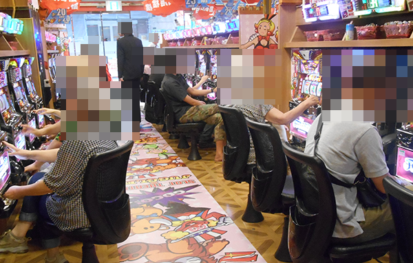 15時頃の20円パチスロをみると、「バジリスク~甲賀忍法帖~絆」や「沖ドキ!-30」、「パチスロコードギアス反逆のルルーシュR2」などが盛況。