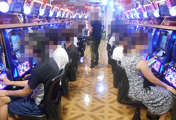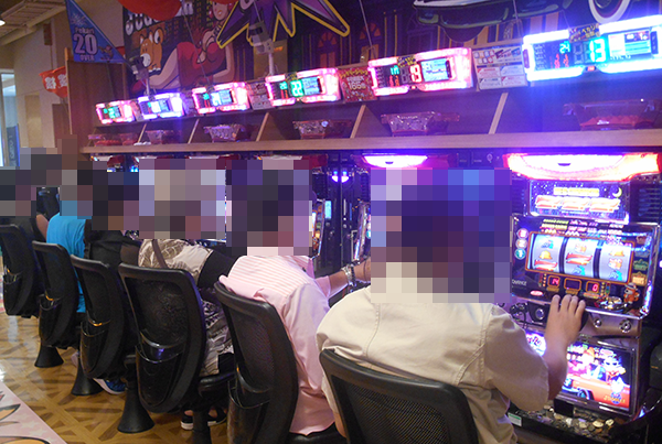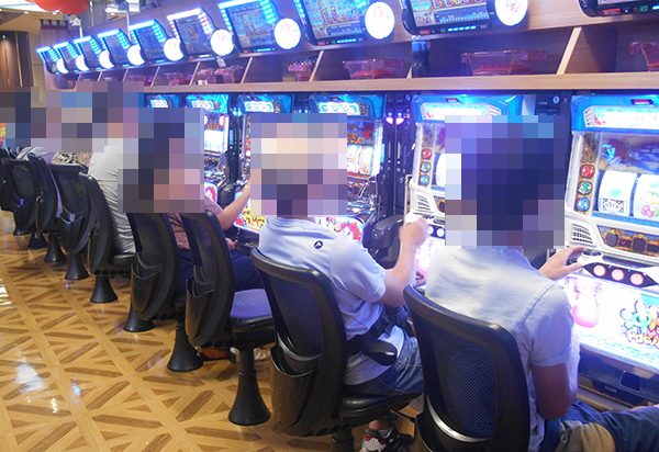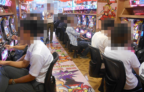 ハナハナシリーズや定番のジャグラーシリーズも活況となっており、笑みを浮かべていたプレイヤーが多数。