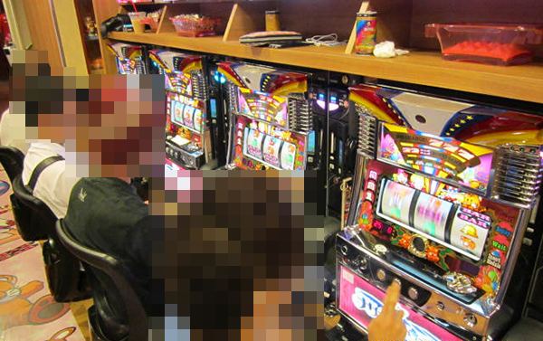 ペアシートが設置されている5円パチスロも、遊技を楽しむプレイヤーたちでにぎわっていた。