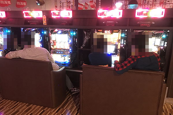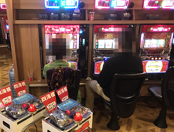 15時を過ぎた頃のホール内で、とくに活気づいていたのが「パチスロ聖闘士星矢 海皇覚醒」と「バジリスク~甲賀忍法帖~絆」。