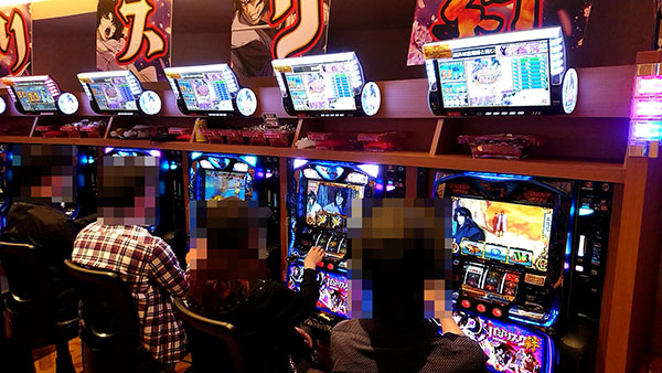 14時頃の店内では、「バジリスク~甲賀忍法帖~絆」や「ミリオンゴッド-神々の凱旋-」などの定番機種が活況。