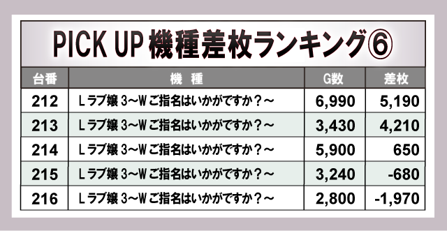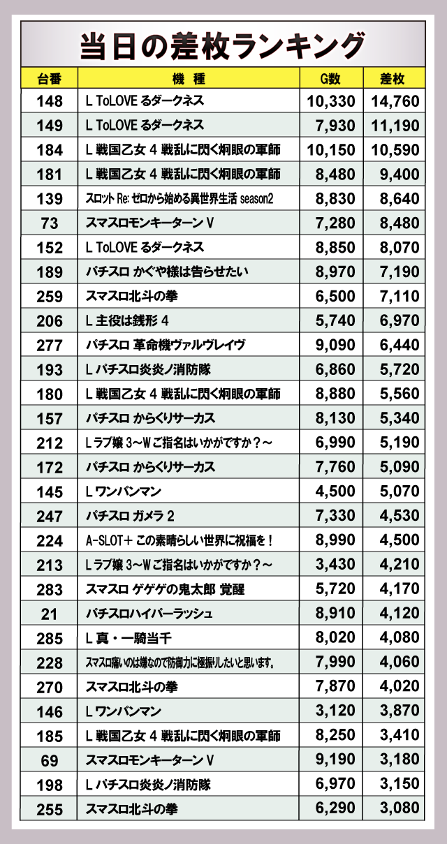 ※差枚数順に掲載しています。