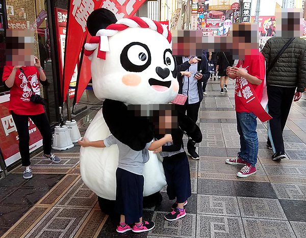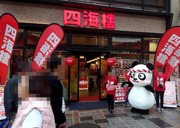 この日は四海樓公式マスコットキャラクターである「よんよん」が来店。ホールの前で交流しているシーンもあり、なごやかな雰囲気が感じられた。